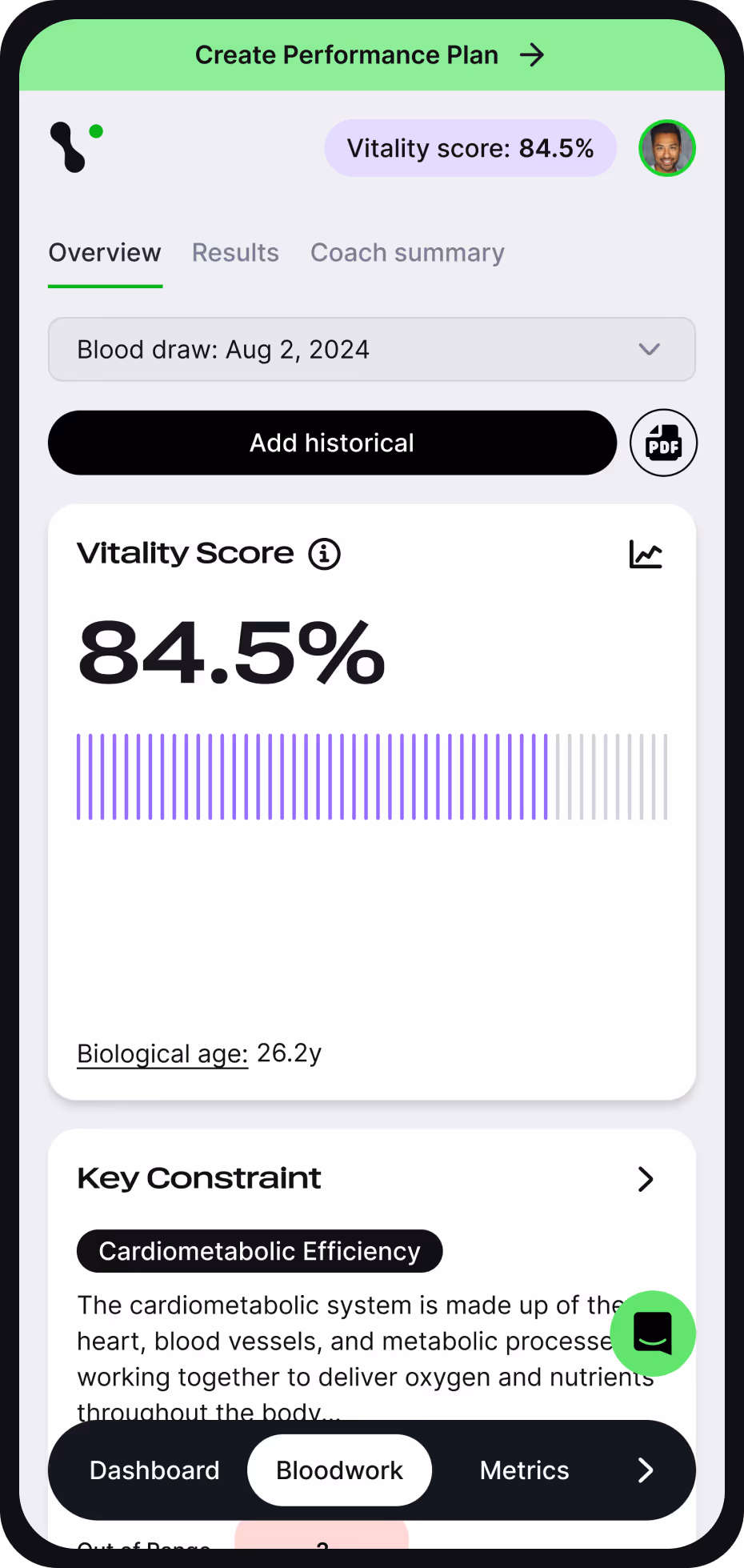 Already have bloodwork? Perfect. Plug it in and let Vitality turn lab data into a high-performance game plan.