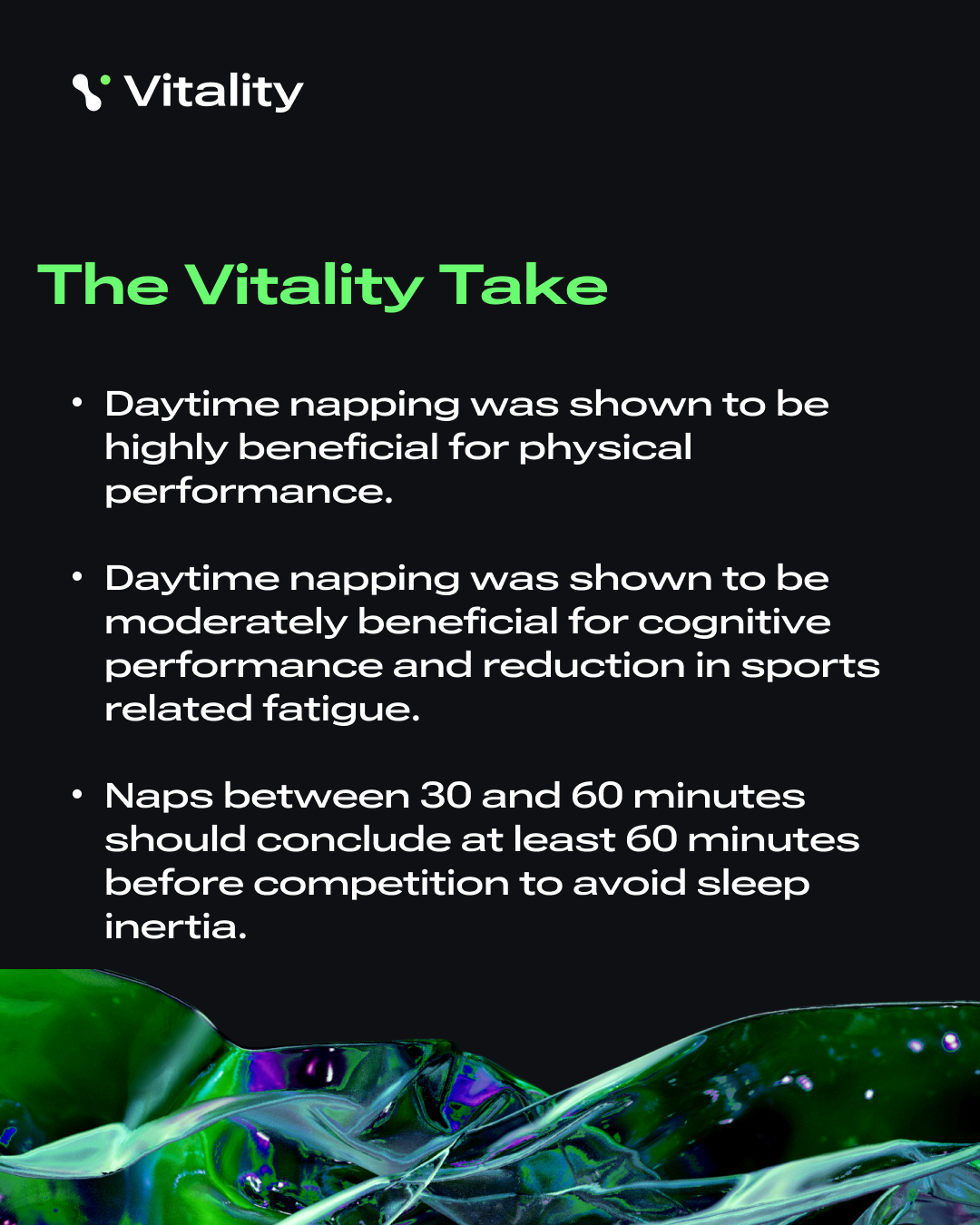 Sleep touches almost all of the Performance Areas in the Vitality Encyclopedia. This meta-analysis suggests that this goes beyond nightly rest and extends to daily napping, independent of the sleep performance the night before.