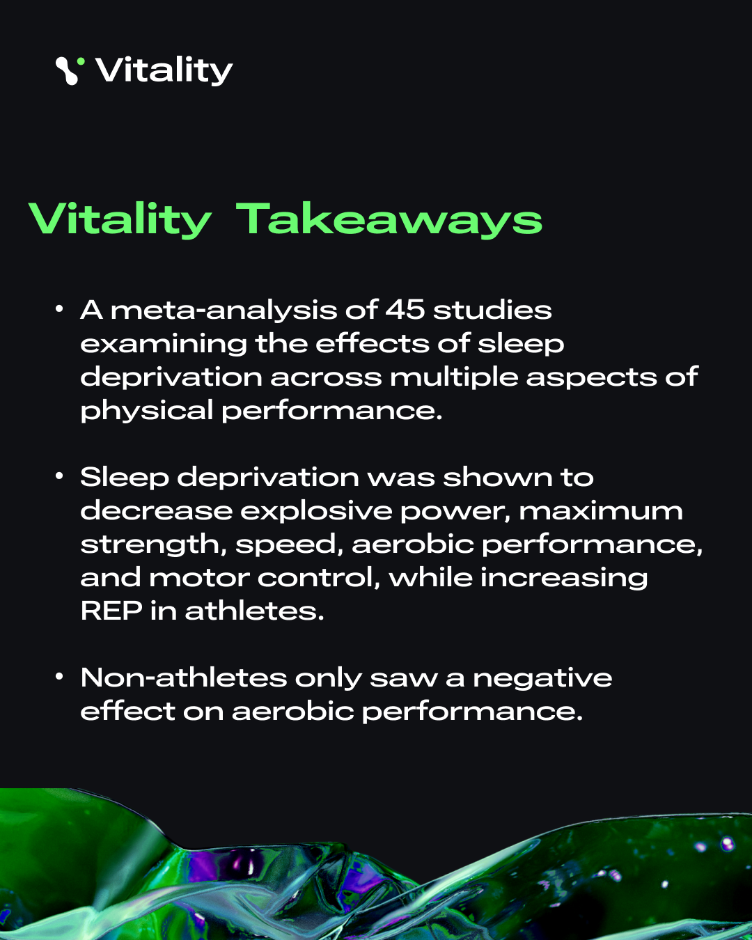 These findings further solidify sleep's place as a cornerstone in optimal performance. While there is solid evidence for sleep's impact on cognitive function, these data point to which areas of physical performance are directly supported by sleep and to what magnitude.