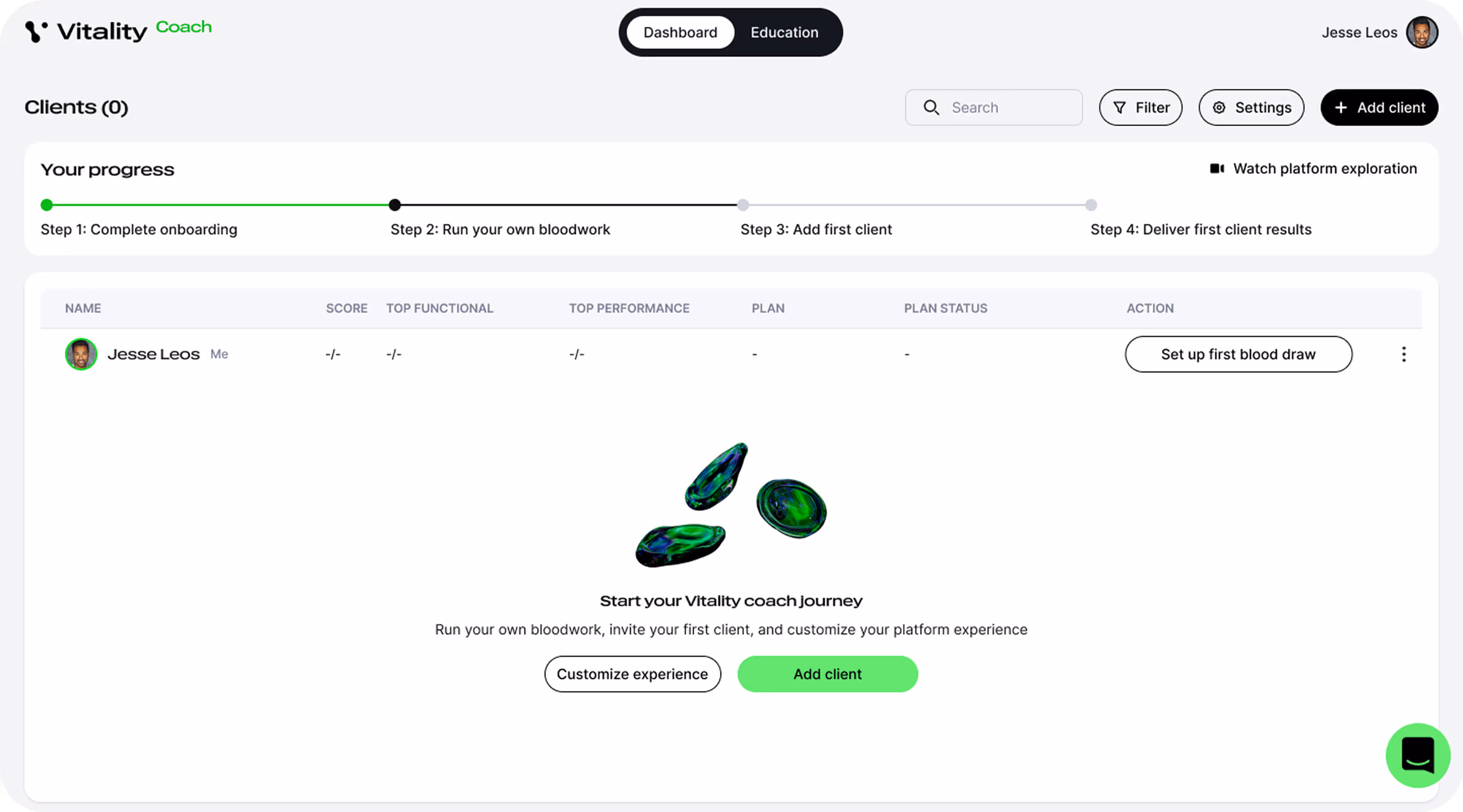 Turn lab data into personalized insight and guidance to unlock results with clients. Vitality handles everything — from bloodwork to personalized plans.