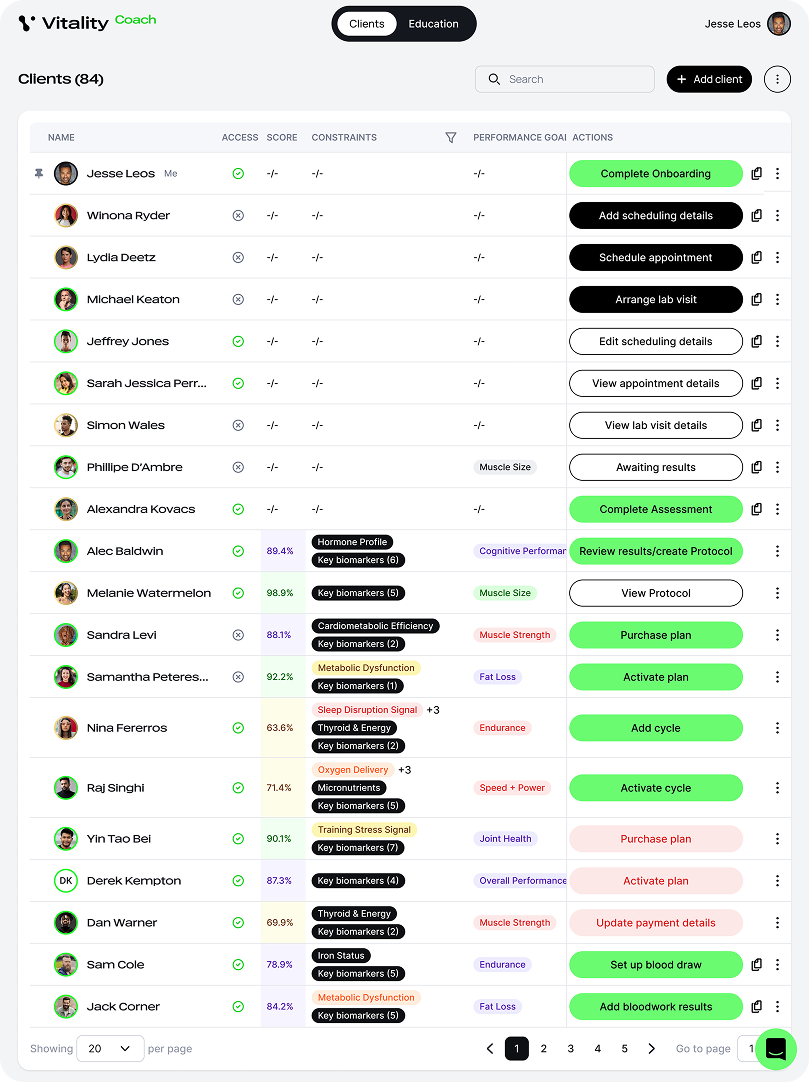 Vitality turns client bloodwork into precise, measurable direction. Deliver results, charge what you're worth, and build a practice that compounds.